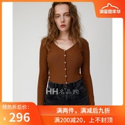 日本代购MOUSSY19秋季新品纯色V领罗纹修身针织开衫010CAF70-5330