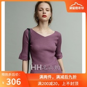 日本代购MOUSSY 19秋纯色V领中袖修身罗纹针织衫女010CAH70-6160