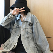 潮牌we11done牛仔夹克幂幂同款做旧休闲宽松男女街头welldone外套