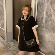 FATFATBABY胖MM小香连衣裙宽松显瘦娃娃领黑色裙子女2019新款大码