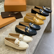 YDLTODS豆豆鞋女2021早春新款麻花扣休闲鞋鳄鱼纹粗跟复古乐福鞋