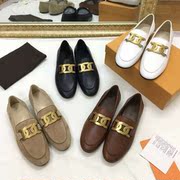 YDLTODS 链条乐福鞋21新款一脚蹬懒人鞋真皮金属扣平底防滑小皮鞋