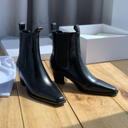 toteme纯原马丁靴女23秋新款复古高粗跟尖头帅气暗黑短靴及裸靴子