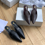 小众半拖女2023新款真皮浅口尖头凉拖细高跟包头百搭时髦穆勒拖鞋