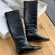 toteme鳄鱼纹及膝靴女23新款尖头骑行靴平底高筒休闲低跟时尚长靴