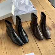 toteme短靴女士23秋冬鳄鱼纹真皮方头平底低跟休闲短筒百搭时装靴