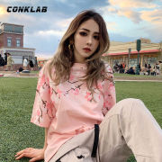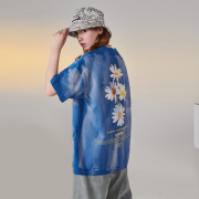 XLU迅鹿国潮反战油漆小雏菊短袖潮牌T恤男情侣装花卉标志樱花半袖