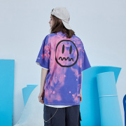 XLU迅鹿国潮情侣装夏装扎染短袖T恤圆领男女嘻哈宽松半袖Unique