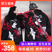 XLU迅鹿国潮二代仙鹤刺绣丝绸横须贺外套情侣同款夹克棒球服MAMC