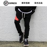 XLU迅鹿国潮贴标抽绳工装裤男女情侣ins同款街头嘻哈束脚裤OKCEY