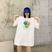 XLU国潮情侣装夏装水火拼接猫猫头短袖男女宽松嘻哈半袖T恤ACHS