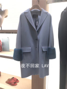 意大利LORO PIANA 诺悠翩雅 时尚女士休闲浅蓝色翻领羊绒大衣