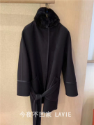 意大利 LORO PIANA 秋冬专柜 女士休闲深色皮草领中长款羊绒外套