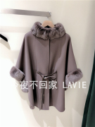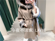 意大利 LORO PIANA 秋冬 女士卡其色皮草拼接小羊绒连帽大衣外套