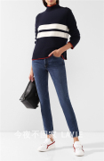 意大利 LORO PIANA 诺悠翩雅 秋冬 女士深蓝色高领条纹羊绒针织衫