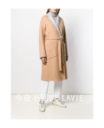 意大利 LORO PIANA 秋冬专柜 女士卡其色长款翻领小羊绒大衣外套