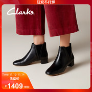 clarks其乐女鞋英伦侧拉链粗跟中高跟靴子短靴踝靴女