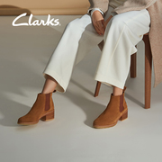 clarks其乐女鞋2019秋季新款Amara Chelsea复古方跟切尔西短靴女