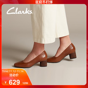【双11预售】clarks其乐女鞋2019秋季新款浅口圆头裸色粗中跟单鞋
