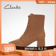 clarks其乐女鞋秋冬新款复古英伦系带高跟鞋瘦瘦靴骑士靴短靴女