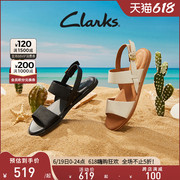 Clarks其乐女士卡希系列优雅一字带平底罗马凉鞋交叉带舒适凉鞋女