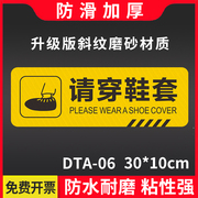 请穿鞋套标识牌标贴商场超市酒店餐厅上下楼梯标贴牌小心地滑小心台阶斜纹防滑地贴换鞋区标贴指示牌提示标牌