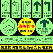 夜光地贴安全出口标识楼梯通道小心台阶荧光标志提示指示牌消防荧光提示夜光地贴商场超市消防紧急疏散标贴牌