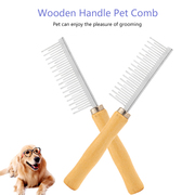 Stainless Steel Long Wooden Handle Pet Dog Cat Comb Grooming
