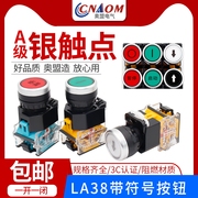 LA38系列带符号按钮启动停止银点一开一闭22mm带箭头圆圈 自复位