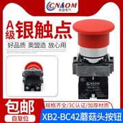 奥盟按钮开关自复位XB2-BC42红色蘑菇头点动电源启动开关常闭银点