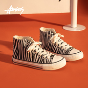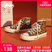 安逸猿百搭高帮帆布鞋女ulzzang2020秋冬新款加绒豹纹复古百搭ins