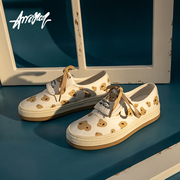 安逸猿国潮 原创卡通印花帆布鞋女日系ins学生百搭低帮港风面包鞋