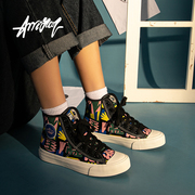 APE TEES/安逸猿帆布鞋女涂鸦秋冬高帮ulzzang百搭2019新款韩版潮