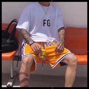QQ Just Done LAKERS 湖人队刺绣网眼短裤 詹姆斯科比篮球裤