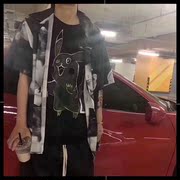 QQ 手绘涂鸦卡通皮卡丘短袖 吴亦凡同款嘻哈短袖 男女情侣同款T恤