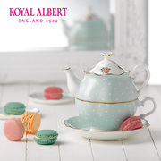 Royal Albert皇家阿尔伯特波尔卡蓝玫瑰一人悦享茶壶茶杯三件套