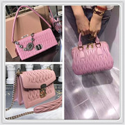 缪缪miumiu女包新款羊皮褶皱钻石水晶链条包单肩斜挎手提手拿包包