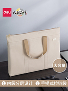 得力大容量公文包女士帆布包拉链式手提包休闲电脑包商务男款通勤牛津防水资料文件袋多层档案整理收纳用