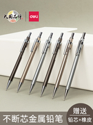【5支装】得力自动铅笔0.5小学生用金属重手感不断芯自动笔0.7儿童男女生一二年级按动活动铅笔2b绘图橡皮擦
