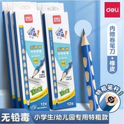 得力小学生无毒洞洞铅笔一年级幼儿园粗杆专用加粗洞洞笔大三角杆学生儿童正品hb正姿2b2比初学者矫姿套装