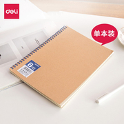 得力牛皮纸笔记本线圈本子A5小学生螺旋本文艺精致加厚商务记事本简约小清新大学生加厚活页考研横线B5练习本