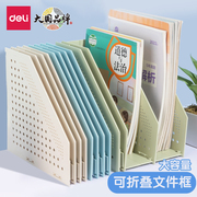 得力折叠书立架可伸缩书立架文件收纳筐小清新桌面文具收纳学生大号文件架书架折叠书立架桌面文件盒办公用品四联