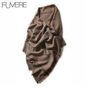 戎美【PJ0606323】加厚精纺羊毛 时髦镶色格纹 流苏围巾