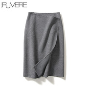 戎美【QZ0834547】高支羊毛羊绒 小千鸟格 时尚感交叠双面呢半裙