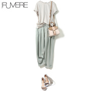 戎美【KZ0520270】垂坠感高腰打褶宽松直筒阔腿九分萝卜哈伦裤