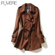 戎美【FY0824525】蒙特利尔枫叶棕 高支棉 双排扣中长款风衣