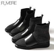 戎美【SH1001094】胎牛拼接厚底ZENG高秋冬弹力袜子靴短靴