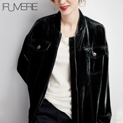 戎美【WT0724456】复古时髦 桑蚕丝丝绒 休闲棒球外套