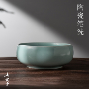 七武士陶瓷笔洗大号青瓷水盂学生成人毛笔书法用品桌面摆件国画美术练习专用加水舀水墨池水碟笔洗缸文房四宝