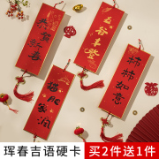 七武士珲春硬卡空白手写对联加厚四字四言成语春联挥春万年红描金宣纸中国结流苏挂件新年硬卡书法宣纸作品纸
